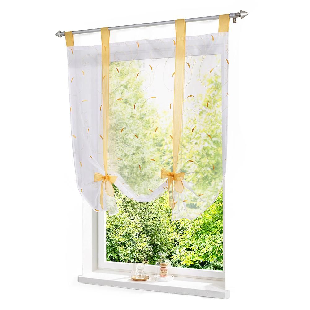 Practical Boutique Blossom Embroidery Screens Up And Down Pulling Curtains Roman Curtains Yellow 60 140cm